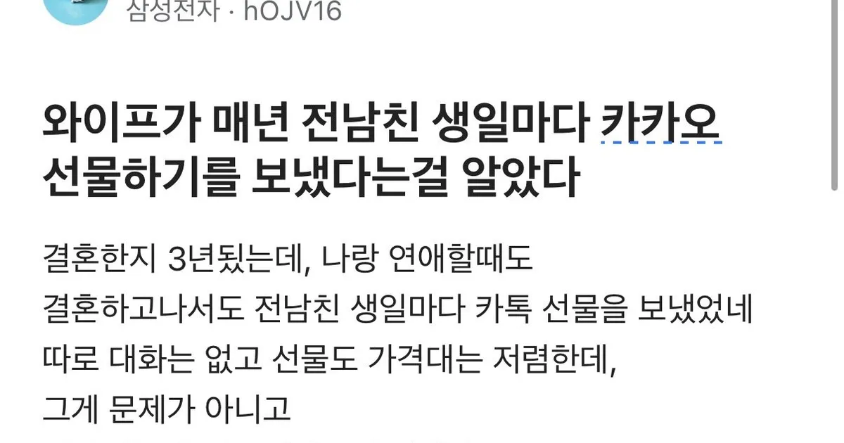 와이프가 매년 전남친 생일에 선물보낸걸 알게된 삼성전자