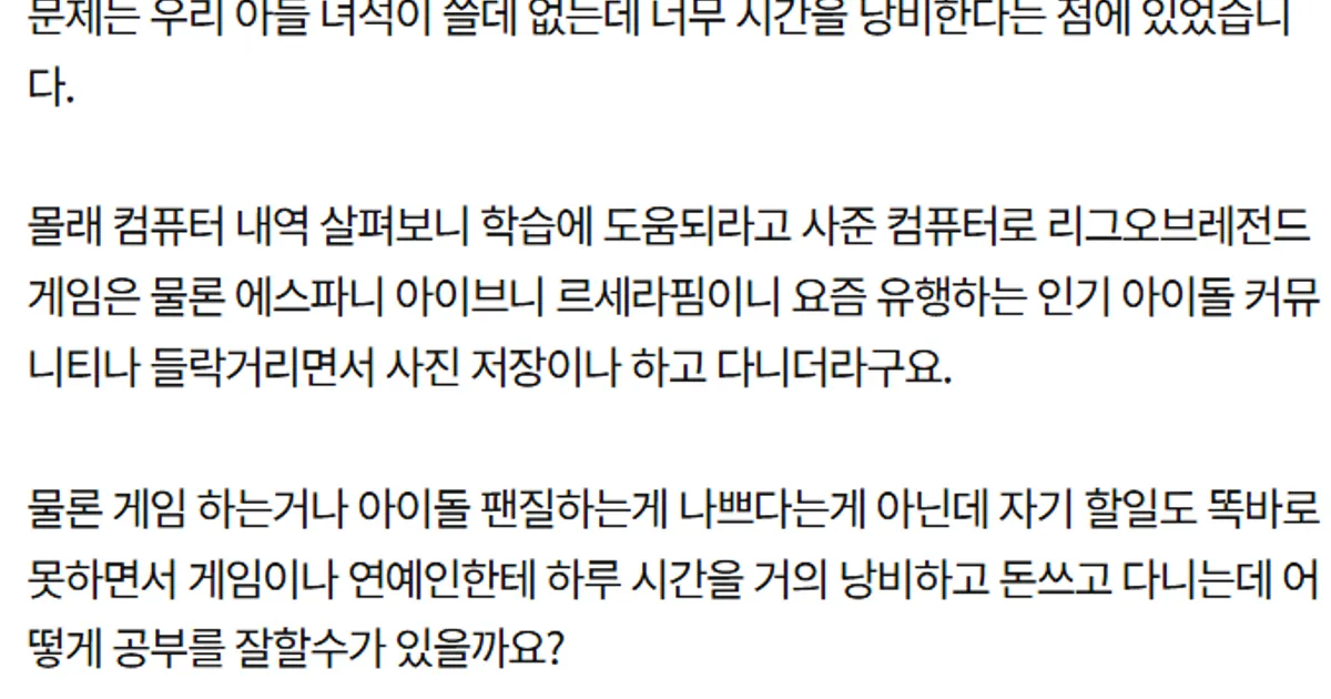 중학교 다니는 아들 컴퓨터를 없애버렸어요