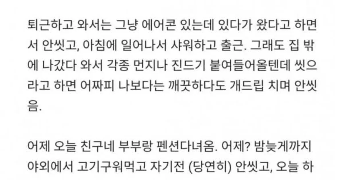 퇴근하고 안씻는 아내