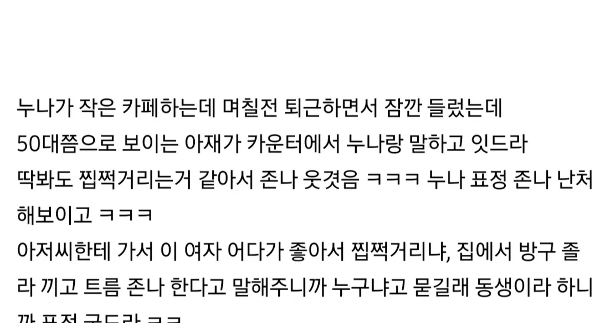 누나한테 찝적거리는 50대 아재 퇴치한 남동생