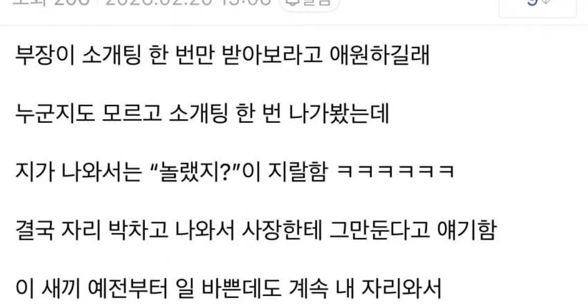 소개팅 나갔다가 퇴사한 ㅈ소사원