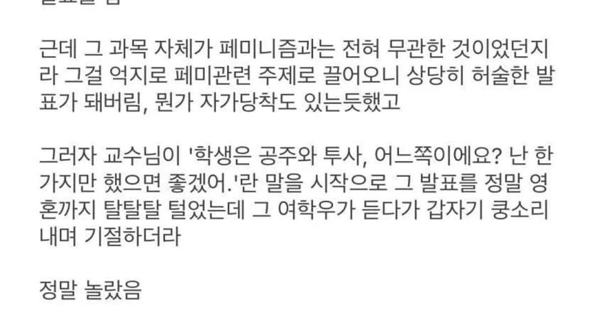 말빨에서 밀린 페미니스트 여대생의 선택