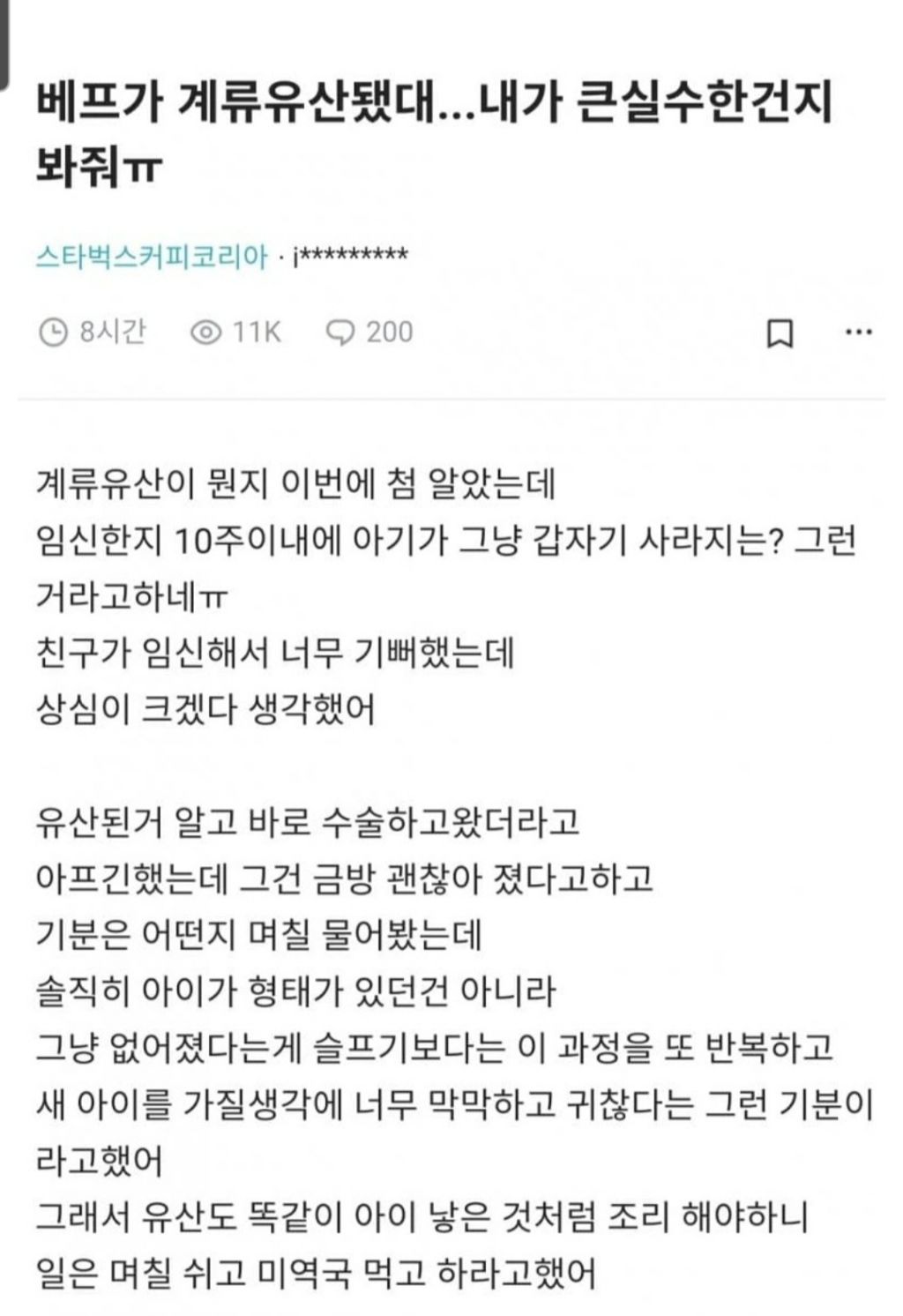 베프가 계류유산됐대 내가 말 실수한건지 봐줘 ,,