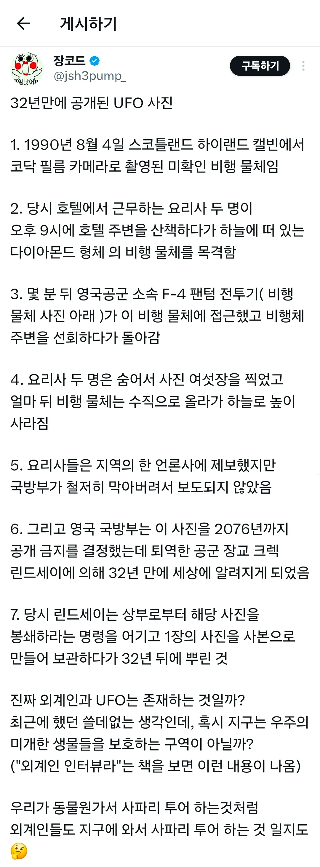 2022년 영국에서 32년만에 공개된 UFO사진 ,,