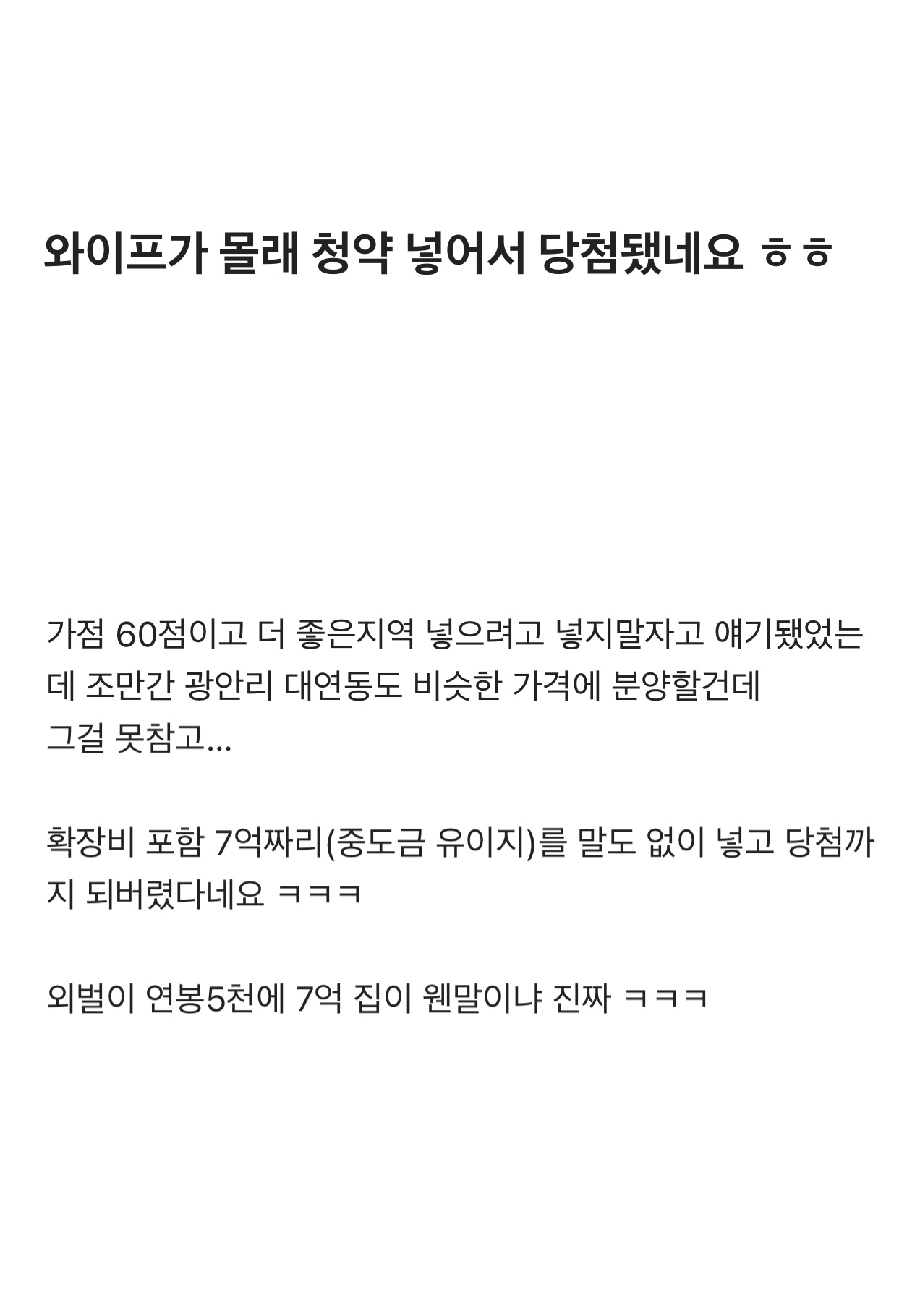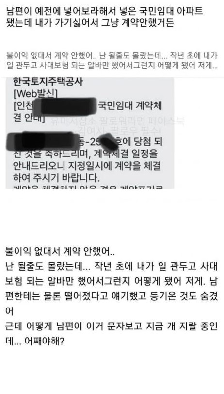 배우자 몰래 임대아파트 당첨 취소함