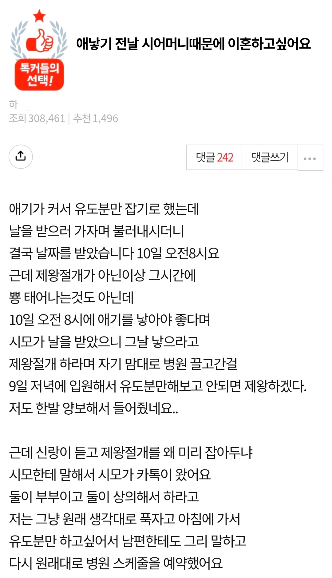 애낳기 전날 시어머니때문에 이혼하고싶어요