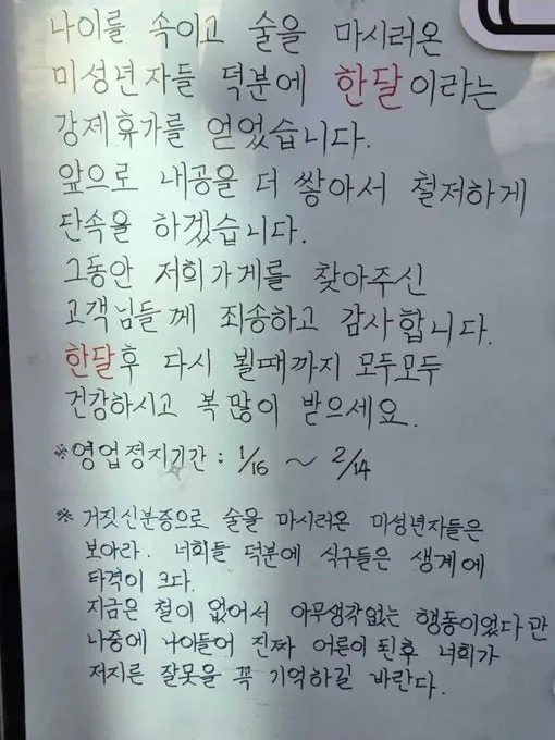 한 달 영업정지 먹은 이유