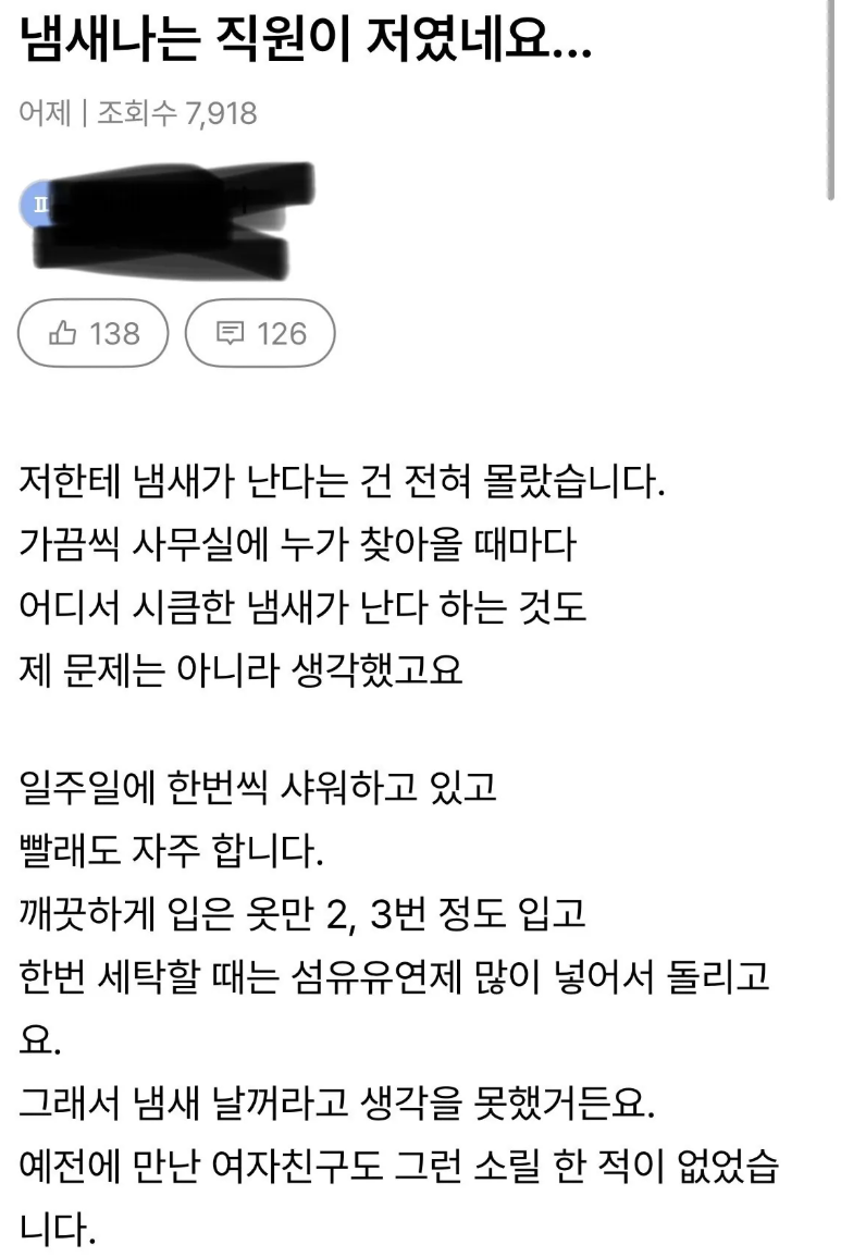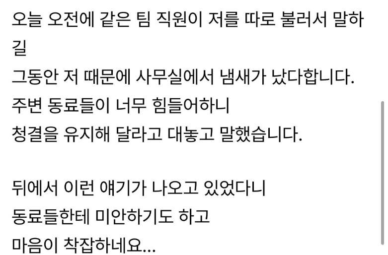 냄새나는 직원이 저였네요